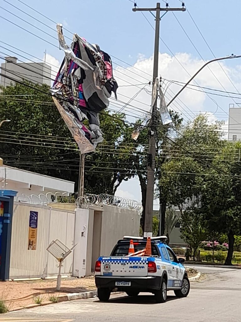 Dois balões foram recolhidos e outro caiu na rede elétrica da rua Pernambuco. Equipes da CPFL foram acionadas para retirar o artefato da fiação.