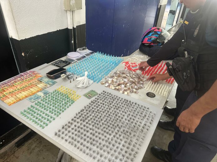 Ao chegarem ao imóvel, o suspeito não foi encontrado. A mãe dele, no entanto, autorizou a entrada da equipe no local. Durante a vistoria, os guardas localizaram uma arma escondida em uma gaveta, além de entorpecentes e uma quantia em dinheiro.