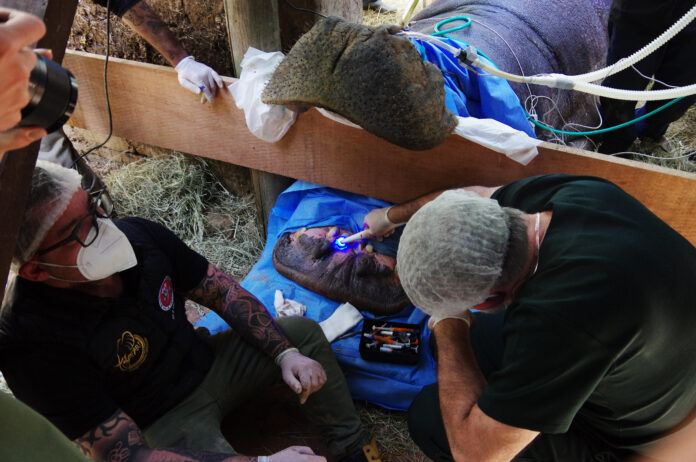“Esse hipopótamo estava com a parte interna do dente exposta, o que causava dor e dificultava a alimentação. Reunimos os melhores profissionais para garantir uma anestesia segura e um procedimento eficaz. Tudo correu perfeitamente”, explicou Fecchio. “Saber que ele acorda sem dor e voltará a se alimentar normalmente já é uma missão cumprida.”