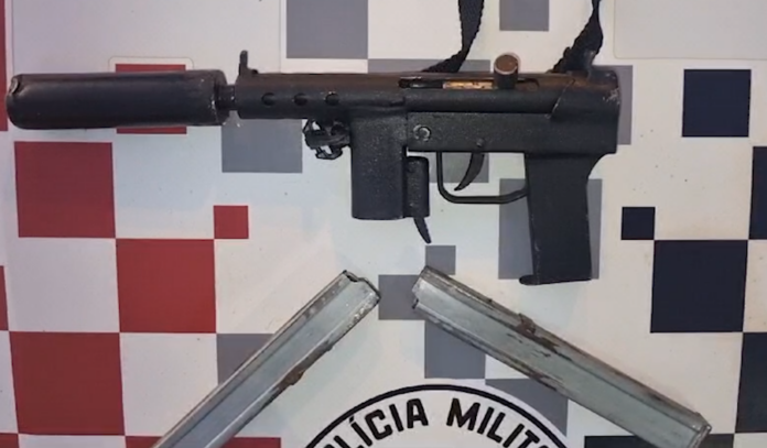 Foram encontradas quatro motos roubadas, uma metralhadora caseira, dois carregadores e munições.