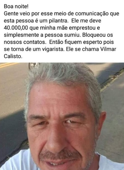 A própria mulher publicou várias vezes nas redes sociais que Vilmar teria pego esse dinheiro emprestado da mãe dela e sumiu.