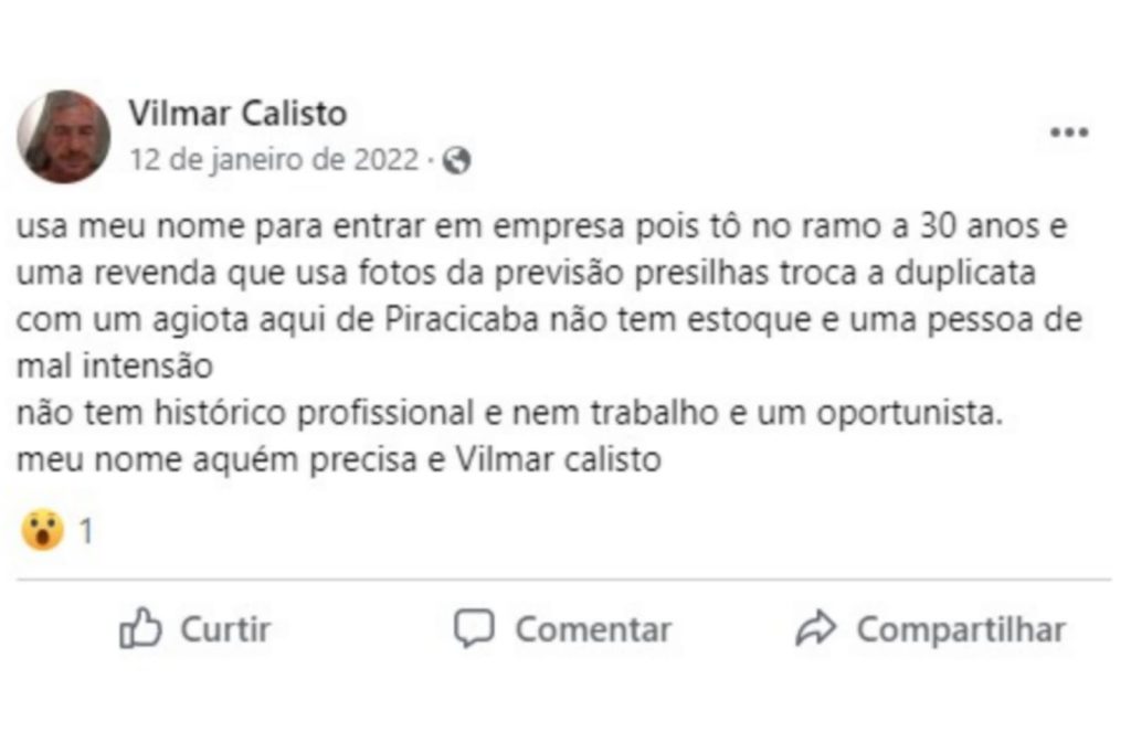 O homem também chegou a publicar que “alguém utilizou o nome dele para entrar em uma empresa e realizar trocas de mercadoria com um agiota da cidade”.