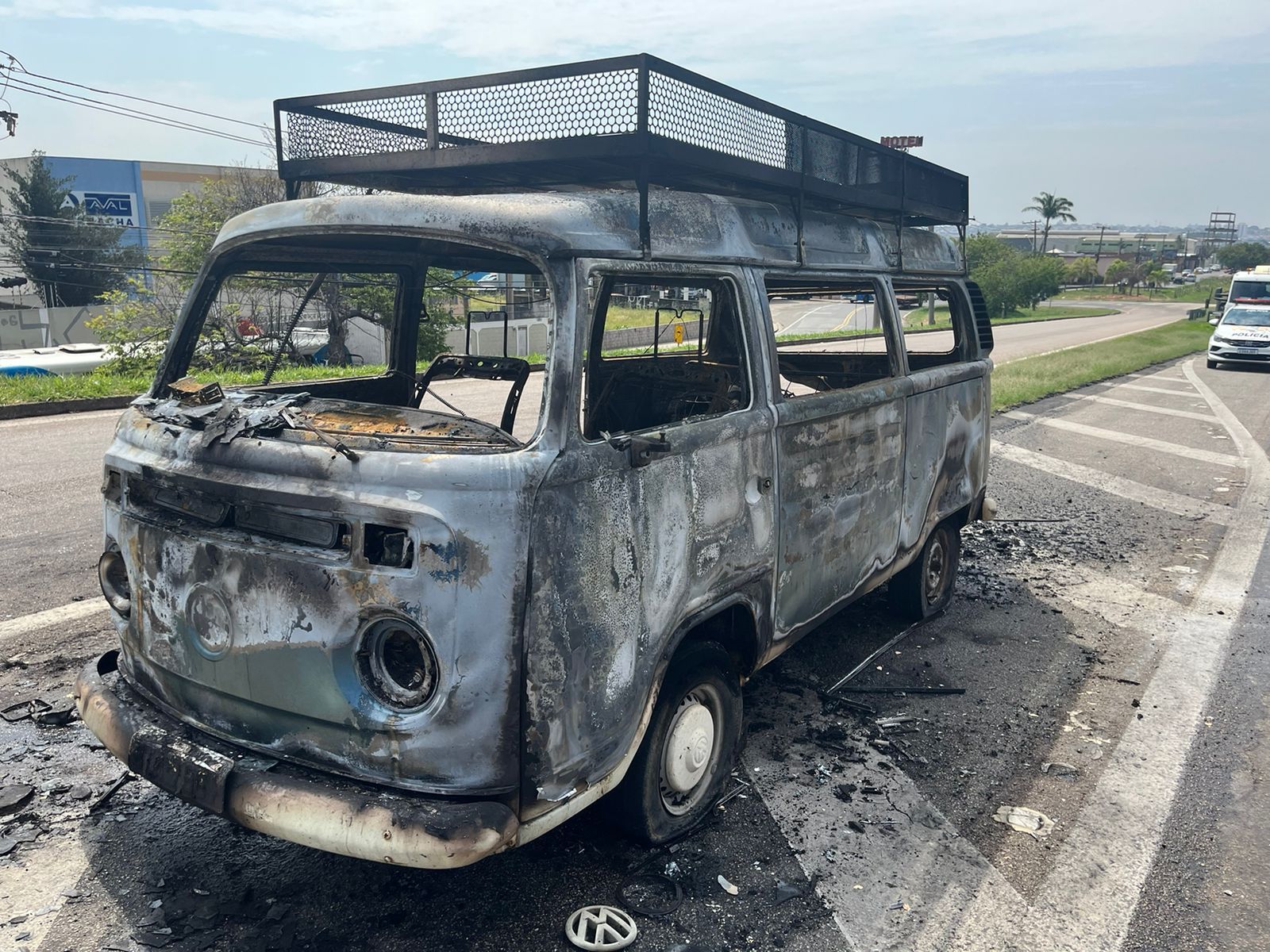 Uma perua Kombi foi foi incendiada no início da tarde desta quarta-feira, 20, na Rodovia Santos Dumont, em Campinas. O veículo estava com o licenciamento vencido há 10 anos.