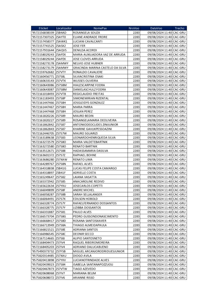 A lista com nomes confirmados dos passageiros que perderam a vida em um acidente aéreo na cidade de Vinhedo (SP), nesta sexta-feira, 09, foi divulgada oficialmente. Na lista divulgada aparecem 61 nomes.