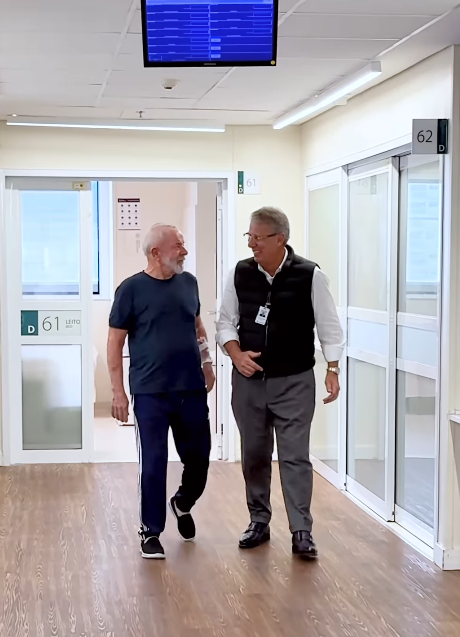 Hoje, em postagem publicada na tarde desta sexta-feira (13), Lula aparece caminhando ao lado do médico Marcos Stavale, responsável pelas últimas cirurgias realizadas no presidente.
