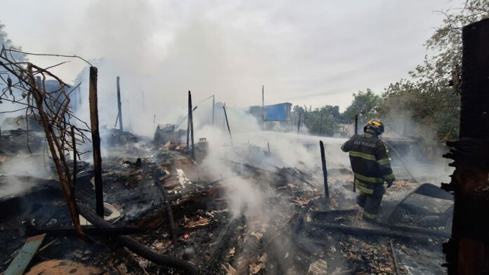 Um incêndio destruiu 5 barracos na comunidade conhecida como “Favela do Zincão” em Americana, na manhã deste domingo, 20.