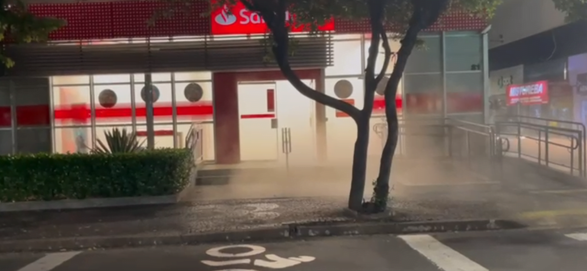 A fumaça que saia do banco era densa e impossibilitava enxergar a agência por dentro. Os bombeiros foram acionados por populares que passavam pela rua Quinze de Novembro, na região central da cidade.