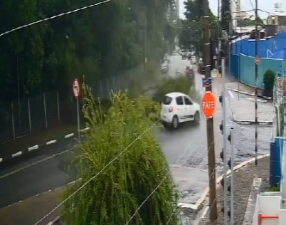 Um galho de árvore de grande porte caiu na Rua Dr. Barros Monteiro, próximo ao Bosque dos Alemães, em Campinas nesta sexta-feira (8), quase atingindo um carro que passava pelo local. A rápida reação do condutor, registrada por câmeras de segurança, evitou o pior.