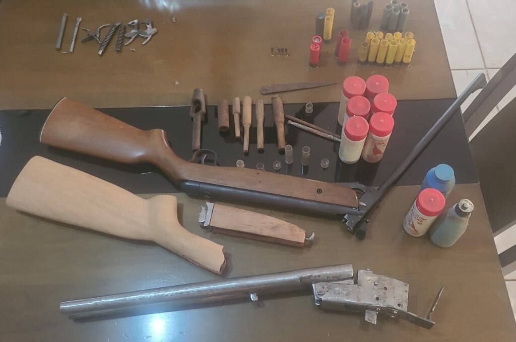 Nos três locais vistoriados, foram encontrados produtos de ilícito penal e ambiental, entre eles: duas espingardas, diversas munições, dez jabutis, oito tigres d’água, uma arara-vermelha e uma arara-canindé.
