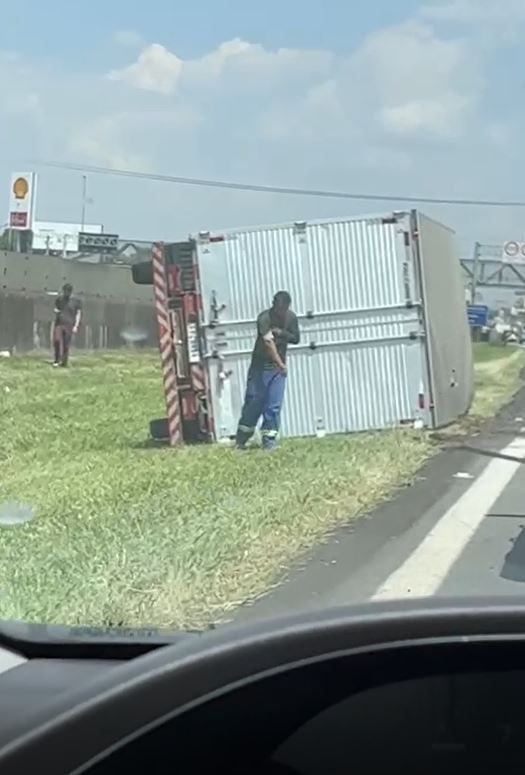 Segundo informações, após o furo do pneu, o motorista perdeu o controle e o caminhão baú capotou no canteiro central. Um outro carro foi atingido.