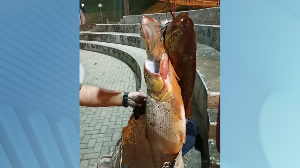 Os policiais cercaram a área e abordaram os homens, sendo um adolescente acompanhado do pai. Eles carregavam pescados dos tipos Dourado, Tilápia e Jurupensém.