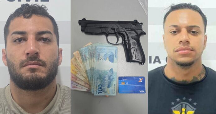 Segundo informações, enquanto um dos homens entrava nas lojas para roubar, o outro ficava dentro do carro com uma arma falsa ameaçando o motorista de morte.
