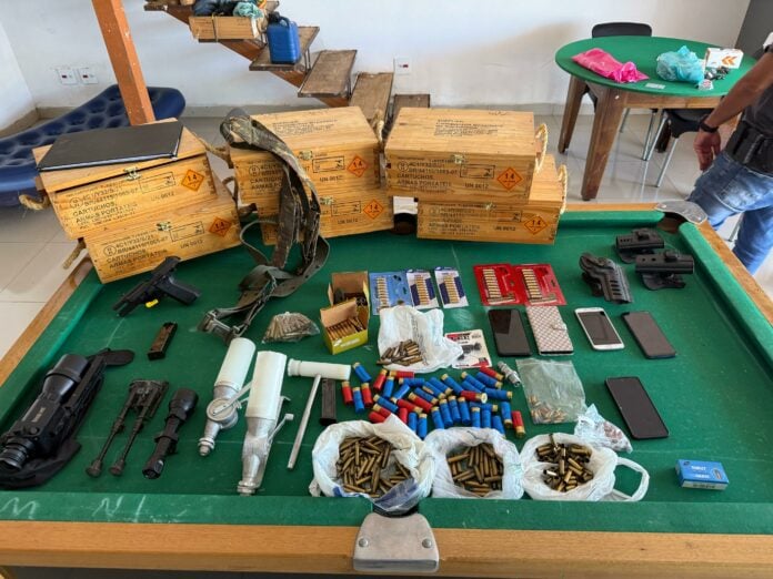 - Centenas de munições de diferentes calibres, incluindo 100 de 5,56mm, 52 de 9mm, 37 de calibre 12, além de diversas munições de .22 magnum, 32 S&W e outros calibres restritos