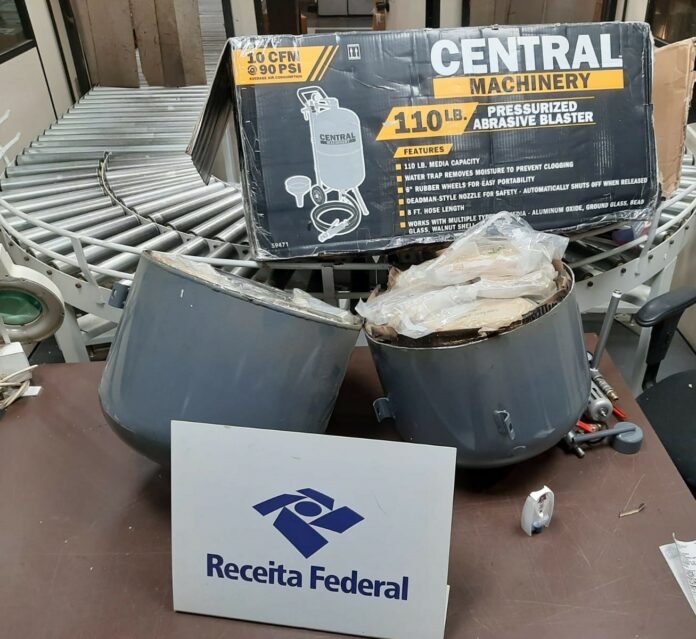 Em uma operação de fiscalização no Aeroporto Internacional de Viracopos, realizada no dia 11 de dezembro, a Receita Federal apreendeu 43 kg de haxixe escondidos dentro de um pressurizador portátil, equipamento geralmente utilizado para remoção de pinturas. A remessa, enviada dos Estados Unidos para São Paulo, foi identificada por meio de alertas de inteligência que direcionaram o pacote para uma inspeção detalhada.
