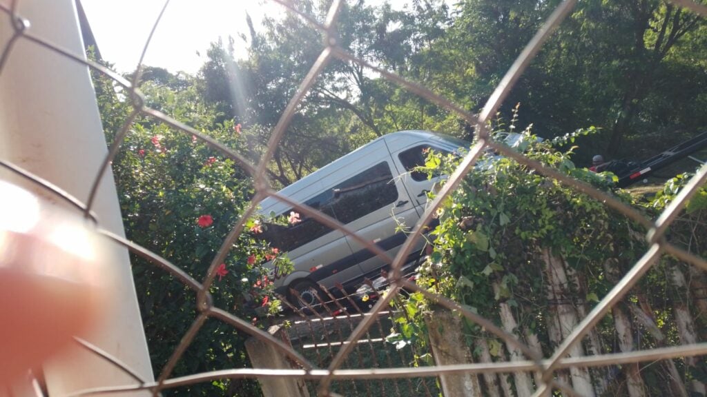 O guincho foi acionado pela empresa responsável pela van e fez a retirada. Moradores registraram a cena.