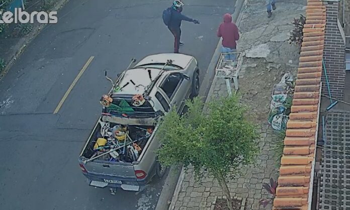 Um jardineiro escapou por pouco de ser atingido por um disparo durante uma tentativa de assalto no Jardim São Bento, em Hortolândia, na manhã desta sexta-feira (30). Imagens de uma câmera de segurança mostram o momento em que o trabalhador é abordado por um homem armado em uma motocicleta.