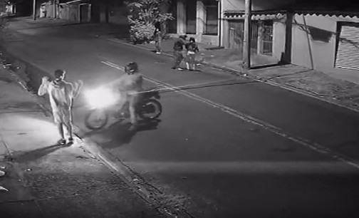 Nas imagens, os jovens — dois irmãos, de 17 e 14 anos, e uma amiga — aparecem caminhando lado a lado, quando a moto sobe na calçada e os surpreende. Uma das adolescentes corre para o outro lado da rua. A segunda chega a ficar com o pé preso no pneu do veículo, mas consegue se soltar e fugir. Enquanto isso, o garupa desce e pega o celular do rapaz que permanece parado.