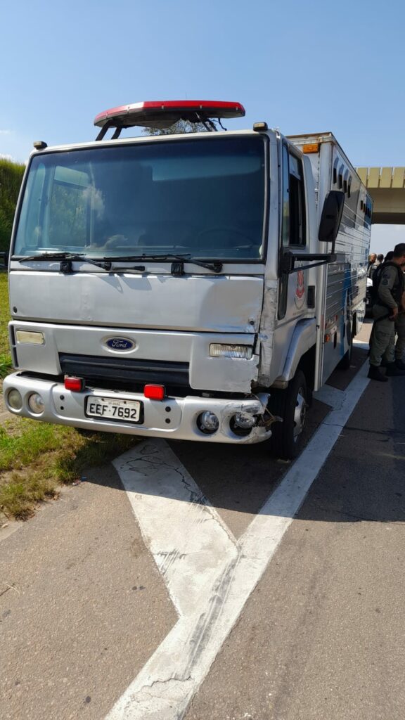 A viatura de escolta da SAP transitava pela rodovia e reduziu a velocidade por conta do trânsito no trecho e acabou atingida na traseira pelo caminhão que transportava os detentos.