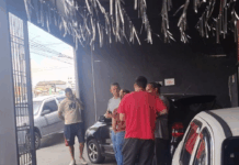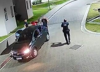 Uma câmera de segurança flagrou o momento em que os agentes abordam os homens dentro do carro, pedem para eles descerem e colocarem as mãos na cabeça. Uma revista corporal e veícular foi feita, mas nada de suspeito foi encontrado. Entretanto, foi constatado que o carro estava com uma fita na placa, adulterando o item.
