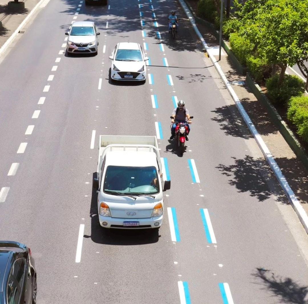 As Avenidas Luiz Dummont Villares e Zaki Narchi, na Zona Norte, e Brigadeiro Faria Lima, na Zona Oeste de São Paulo, ganharam nesta semana novos trechos da chamada Faixa Azul, específica e exclusiva para motocicletas. Com a decisão, a capital paulista chega 60,7 km de Faixa Azul. De acordo com o prefeito Ricardo Nunes, a meta é implementar 200 km até o fim de 2024.