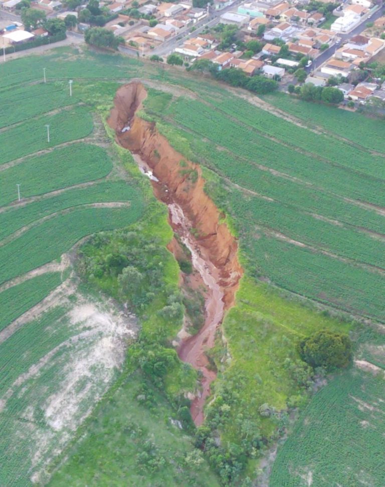 Uma cratera tem assustado os moradores da cidade de Lupércio, a cerca de 100 quilômetros de Bauru, no interior de São Paulo. A erosão, que possui cerca de 242 metros de comprimento, já pode ser avistada por imagens de satélite.