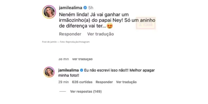De acordo com Jamille, o comentário foi feito “em tom de brincadeira” por algum funcionário de sua equipe que possui acesso ao perfil pessoal.