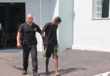 Consciente, os agentes conversaram com o suspeito, que removeu a faca e jogou no chão. Ele foi preso em flagrante e encaminhado para o hospital.