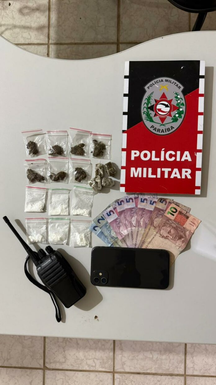 A Polícia Militar prendeu, na noite dessa quinta-feira (26), um homem suspeito de realizar entregas de drogas no bairro Vieirópolis, em São Bento, no Sertão da Paraíba. A guarnição abordou o suspeito enquanto ele pilotava uma motocicleta sem placa.