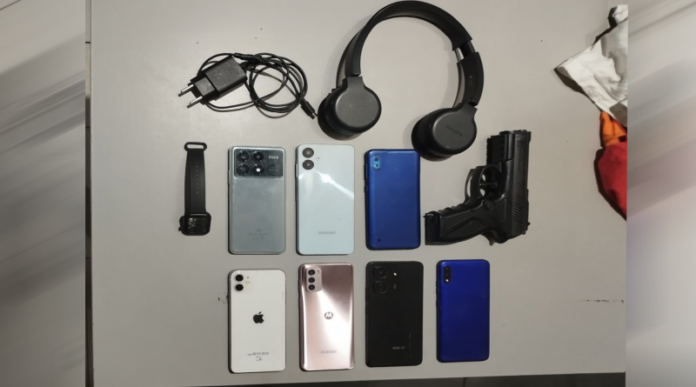 Durante a ação, os policiais recuperaram diversos aparelhos celulares roubados, além de apreender um simulacro de pistola, que teria sido utilizado para intimidar as vítimas.