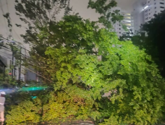 Queda de árvore bloqueia Avenida Júlia Freire em João Pessoa