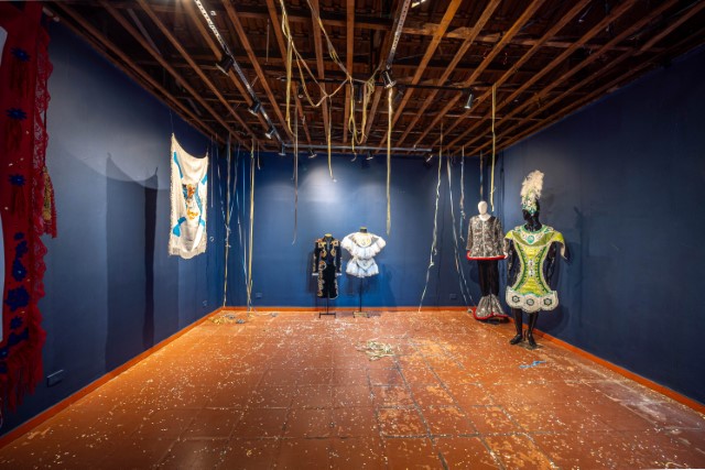 Entre os destaques estão peças cedidas por Maria Izabel da Silva, da tradicional agremiação Unidos da Vila de Lá, e por Edson José da Silva, representante da escola Real Grandeza.