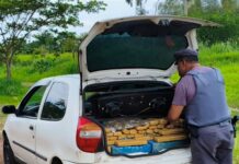 A ação, parte da “Operação Impacto”, ocorreu por volta das 11h40, na Rodovia Raposo Tavares (SP-270), altura do km 545. As equipes abordaram um veículo Fiat/Cronos com placas de Aquidauana (MS). Durante a vistoria, os policiais encontraram 602,9 quilos de maconha em tabletes no porta-malas.