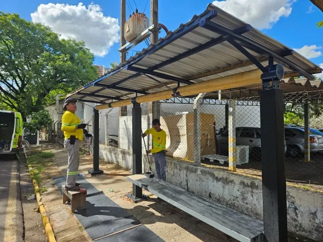Para facilitar a identificação desses endereços, a Secretaria de Mobilidade Urbana e Cooperação em Segurança Pública (Semob) está realizando a pintura dessas estruturas nas cores azul e preta, dessa forma, as coberturas se destacam dos demais pontos de ônibus.