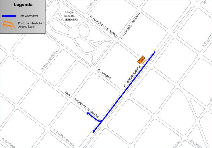 Quem está na avenida Independência e pretende seguir em direção à avenida Jerônimo Gonçalves deve evitar a rua Florêncio de Abreu – que poderá estar com trechos de interdição ao longo da via – e utilizar a rua Prudente de Moraes para acessar a região central ou o destino desejado.