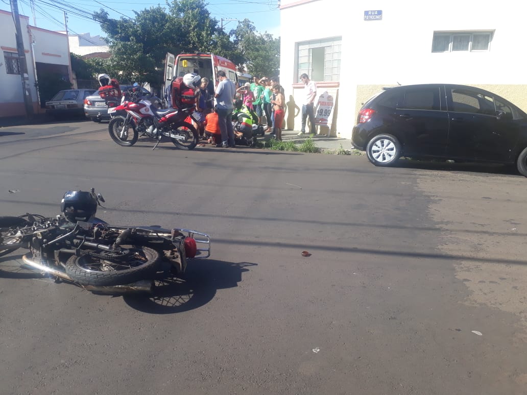 Um motociclista de 40 anos ficou ferido após ser atingido por um veículo no cruzamento das ruas Tamandaré e Patrocínio, nos Campos Elíseos, zona Norte de Ribeirão Preto, na manhã desta segunda-feira (10). Segundo testemunhas, o condutor do carro não teria respeitado o sinal de pare do local.