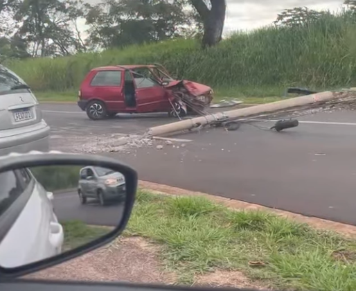 Três pessoas ficaram feridas na manhã desta quinta-feira (08) após um carro colidir contra um poste de energia localizado no bairro Ribeirão Verde, em Ribeirão Preto.