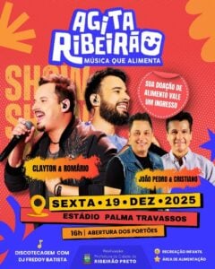 O Agita Ribeirão, com shows gratuitos de Clayton e Romário, João Pedro e Cristiano e mais acontece nesta sexta-feira. O evento contará com área kids, praça de alimentação e um forte esquema de segurança, garantindo conforto e tranquilidade.
