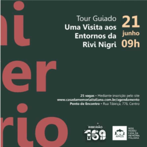 Em comemoração aos 169 anos de Ribeirão Preto, O Museu Casa da Memória Italiana, em parceria com a Prefeitura Municipal realiza um tour guiado. O passeio convida o público para uma visita guiada aos arredores do espaço onde se estabeleceu a Diocese de Ribeirão Preto.