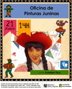 A Biblioteca Sinhá Junqueira está com uma programação especial para comemorar as festas juninas. No sábado, tem oficina de pinturas juninas com Suhelen Tica.