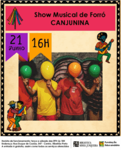 No sábado, também tem show de forró com a banda Canja Cajá na Biblioteca Sinhá Junqueira.