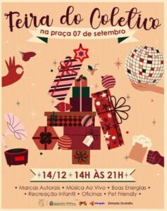 Neste domingo, a Feira do Coletivo chega na Praça 7 de Setembro com mais de 60 marcas autorais para uma edição especial de Natal. O evento também vai contar com a presença do papai noel.