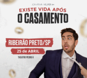 Em “Existe vida após o casamento”, Jonathan Nemer apresenta um show inédito, trazendo toda a comédia e as verdades afiadas sobre a vida a dois.