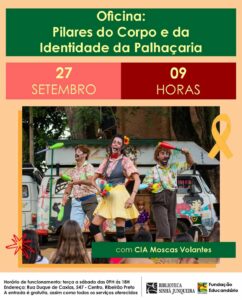 A Biblioteca Sinhá Junqueira realiza a oficina “Pilares do Corpo e da Palhaçaria” neste sábado.