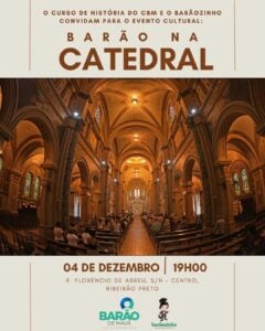 A 2ª edição do “Barão na Catedral” conta com apresentação do coral do Barãozinho e com a participação dos alunos do curso de História, que compartilharão falas sobre a Catedral como patrimônio histórico e cultural da cidade.