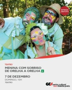 O Sesi Ribeirão Preto apresenta “A Menina com Sorriso de Orelha a Orelha”, um espetáculo lúdico e poético para todas as idades. A protagonista transforma seu jardim em um universo de imaginação, onde voa com pássaros, sente como os animais e envolve toda a família em uma aventura encantadora.
