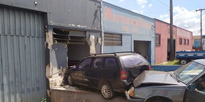 Em decorrência do último choque, o veículo acabou atingindo imóvel, derrubando a parede.
