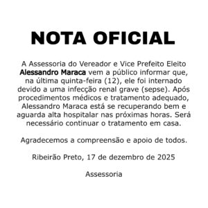 Na íntegra, confira a nota divulgada por Alessandro Maraca, nesta terça-feira (17):