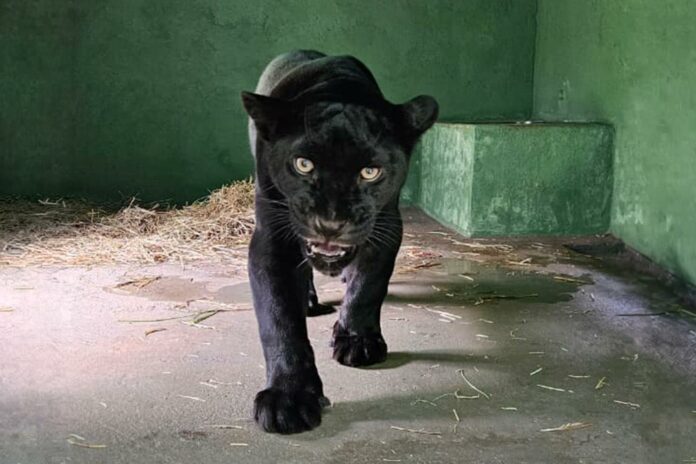 Bosque acolhe filhote de onça-pintada melânica para manejo temporário