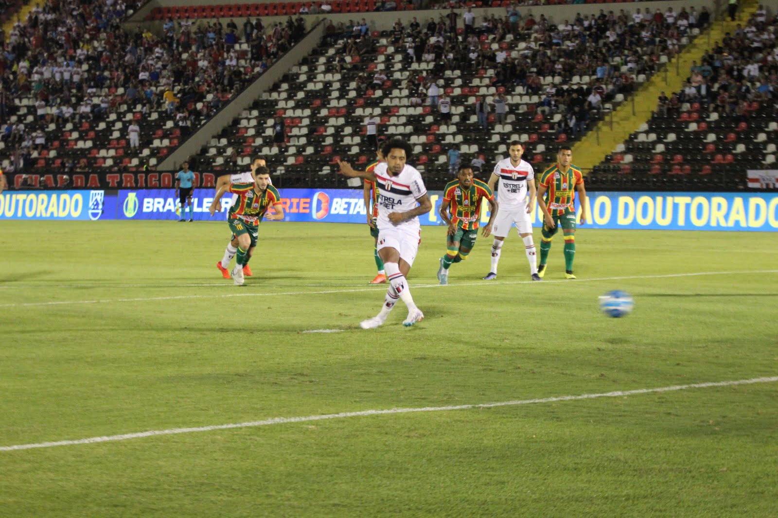 Até os 36 minutos, o time do Maranhão tinha dado apenas dois chutes a gol, assim mesmo de longa distância. O Botafogo administrava o placar e também pouco ou quase nada instigava o time adversário. O primeiro tempo terminou com esse cenário.