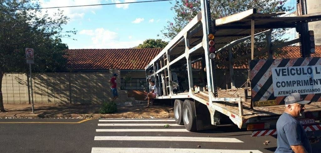 O muro de uma escola municipal foi atingido por um caminhão-cegonha desgovernado na tarde deste sábado (20), no Jardim Castelo Branco Novo, zona Leste de Ribeirão Preto.